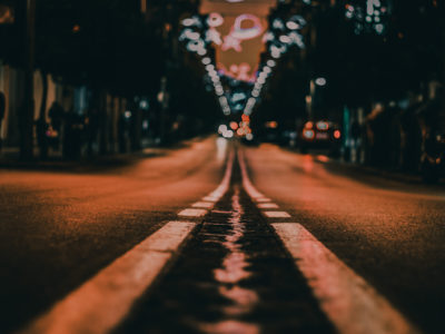 Inmensa calle silenciosa, me escuchas y me observas mientras miro, escucho y hablo. Te mueves conmigo, acompañándome con la seguridad que me dan las encantadoras luces amarillas colgando en los desolados andenes que extrañan personas. Las luces blancas me recuerdan los hospitales y la soledad.